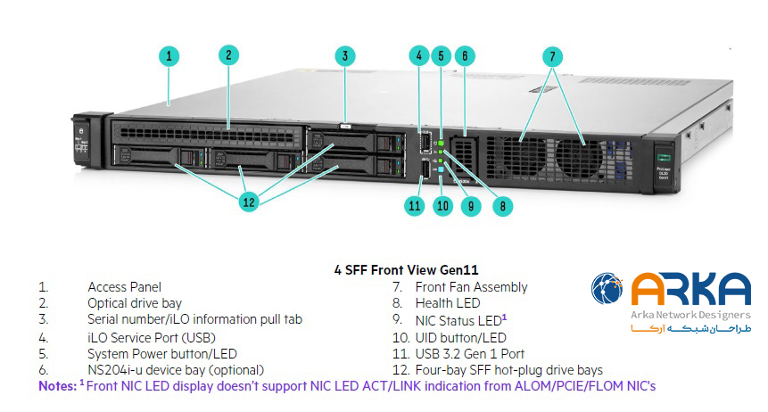 کارت شبکه: 4x 1GbE Embedded NIC با پشتیبانی از ارتقاء به 10/25GbE