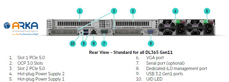 سرور HPE ProLiant DL365 Gen11 با طراحی فشرده 1U، پردازندههای AMD EPYC نسل 4 و 5، حافظه DDR5 تا 6 ترابایت و پشتیبانی از PCIe Gen5، یکی از قدرتمندترین سرورهای نسل جدید HPE است.
