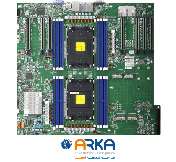 این سرور از سوکت دوگانه LGA-4677 پشتیبانی میکند و مجهز به پردازندههای Xeon نسل چهارم و پنجم است. هر پردازنده دارای 16 هسته و 32 رشته با کش 30MB میباشد و توان مصرفی آن تا 350W در حالت Air Cooling و Liquid Cooling است. این ویژگیها باعث میشود در بررسی سرور Supermicro SYS-751GE-TNRT-NV1، آن را گزینهای ایدهآل برای بارهای پردازشی پیچیده بدانیم.