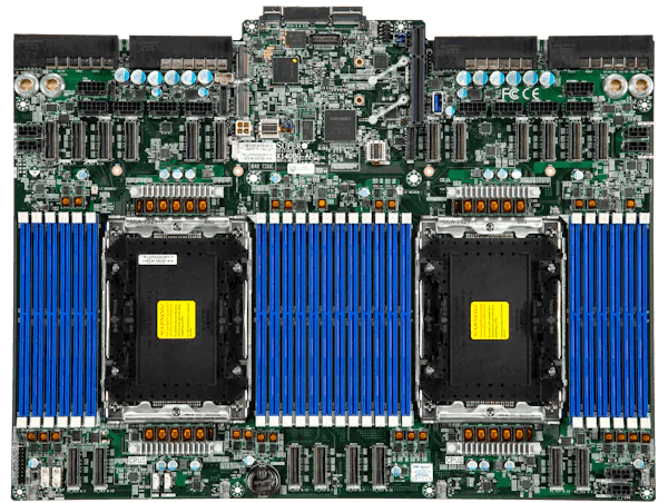 این سرور دارای 24 اسلات DIMM بوده و از حافظه DDR5 ECC RDIMM و MRDIMM پشتیبانی می‌کند. در حالت 1DPC تا 6 ترابایت حافظه با سرعت 6400MT/s و در حالت 2DPC تا 6 ترابایت با سرعت 8800MT/s قابل استفاده است. این ظرفیت بالا، پردازش‌های پیچیده هوش مصنوعی و HPC را به‌خوبی پشتیبانی می‌کند.
