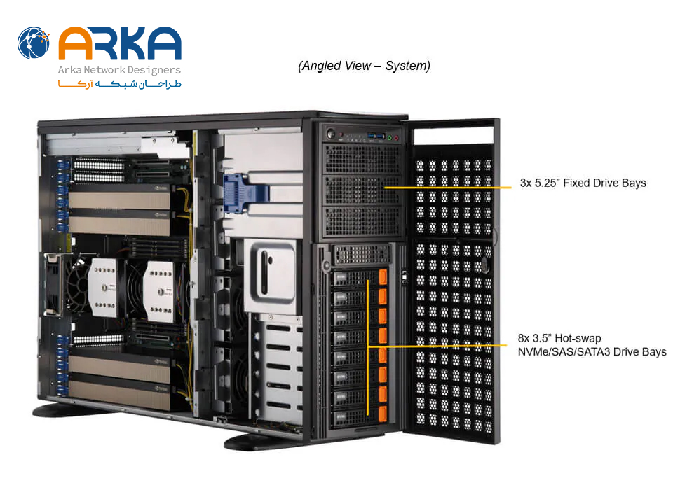 بررسی Supermicro SYS-741GE-TNRT نشان می‌دهد که این سرور در کلاس Tower Rackmount طراحی شده و با بهره‌گیری از پردازنده‌های Intel Xeon نسل چهارم و پنجم، توان پردازشی بسیار بالایی را ارائه می‌دهد. این دستگاه با پشتیبانی از GPUهای حرفه‌ای و حافظه DDR5، انتخابی ایده‌آل برای مراکز داده، پردازش‌های هوش مصنوعی و کاربردهای HPC است.